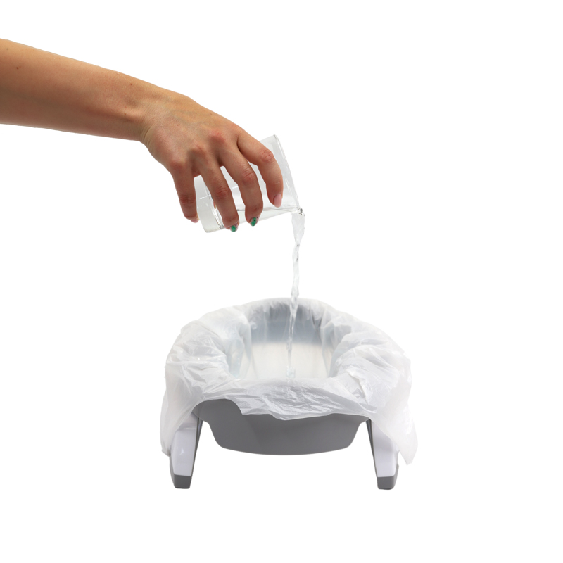 - Umieść wkład jednorazowy wewnątrz nocnika, z wkładką pochłaniającą skierowaną do góry.