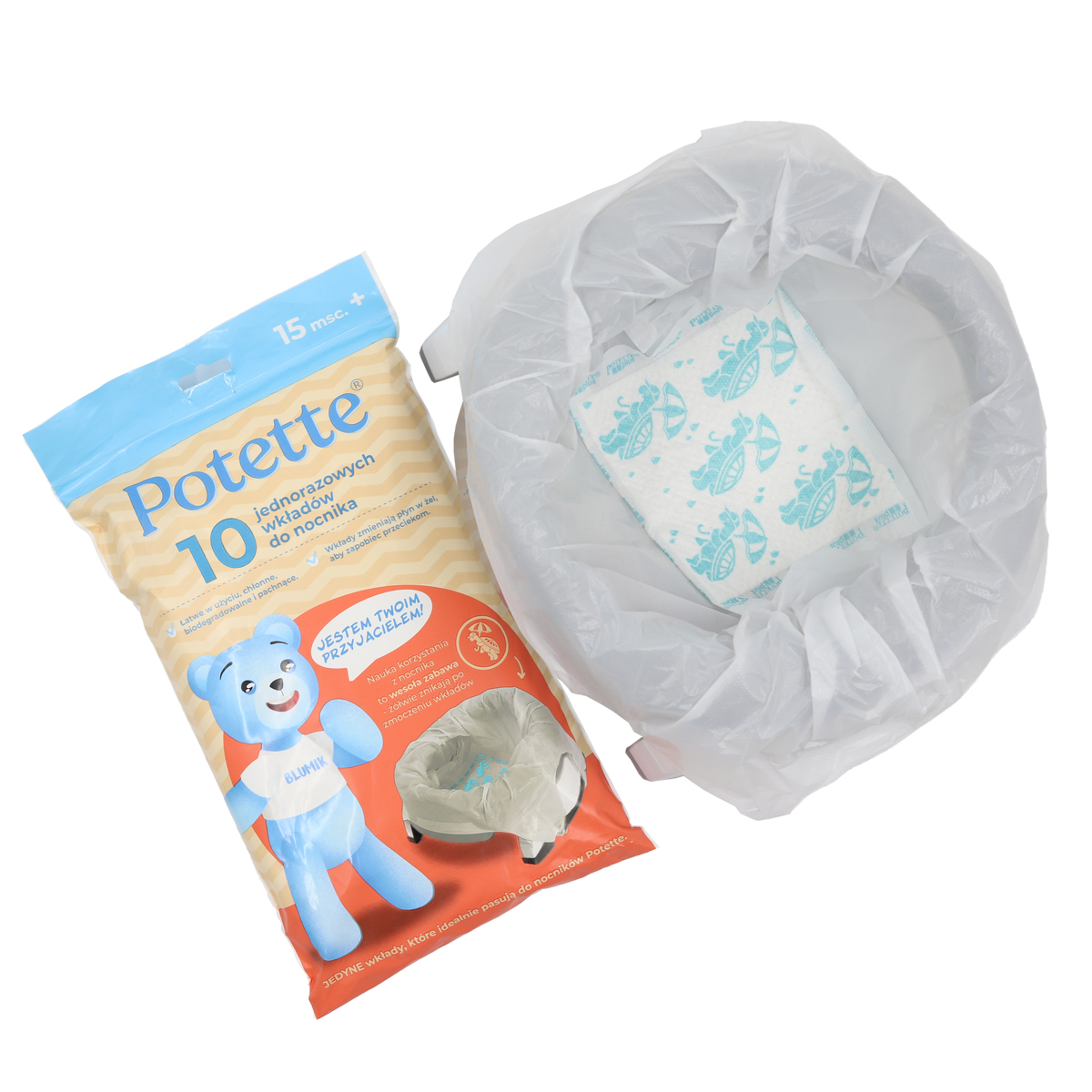 Wkłady jednorazowe przeznaczone do nocnika Potette. Są jednokrotnego użytku, zatem po wykorzystaniu wystarczy wyrzucić je do kosza. Przydadzą się zawsze wtedy, gdy zabierasz nocnik w podróż lub na spacer. Woreczki absorbują do 150 ml cieczy i doskonale pochłaniają nieprzyjemne zapachy. Dzięki temu pomagają utrzymać nocnik w czystości.